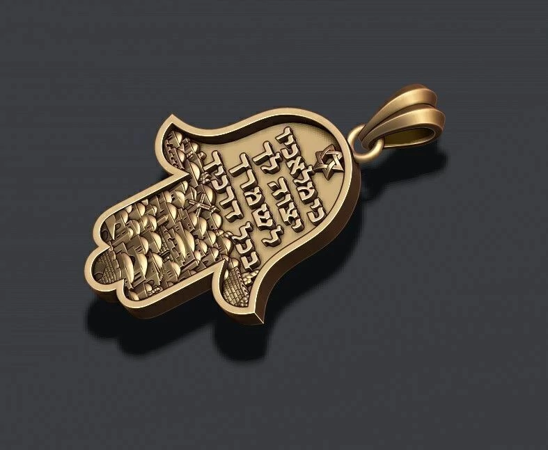 O texto em hebraico "כי מלאכיו יצוה לך לשמרך בכל דרכיך" (Ki malachav yetzaveh lach lishmorcha bechol drachecha) significa "Porque Ele dará ordens aos seus anjos a teu respeito, para te guardarem em todos os teus caminhos". Esta é uma passagem do Salmo 91:11.
